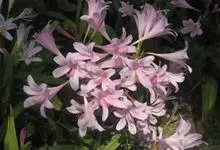 陕西石蒜草本,地生。鳞茎近球形;叶带状;伞形花序,有花5-8朵,白色,花被裂片腹面散生少数淡红色条纹,背面具红色中肋,反卷和微皱缩;雄蕊比花被短,花丝淡紫红色;雌蕊略伸出于花被外,花柱顶端紫红色。…全部>>