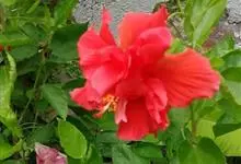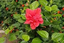 重瓣朱槿(酸醋花、月月开)锦葵目 > 锦葵科 > 木槿属 > 重瓣朱槿