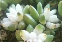 三日月美人叶子比较扁,有透明感,形状像星美人和青星美人,比较容易和其他美人多肉区分开来,三日月美人最突出特点是:叶顶端的尖非常突出、显眼。全部>>
