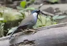 黑喉噪鹛是噪鹛属鸟类。体长24-29厘米,体重75-90克。雄鸟前额、眼先、眼周和眼后纹以及颊、须和喉黑色;黑色前额和蓝灰色头顶之间有道白色细斑;颈侧具椭圆形白斑,…全部>>