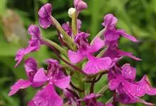 广布红门兰:植株高5-45厘米。块茎长圆形或圆球形,肉质,不裂。茎直立,圆柱状。叶片长圆状披针形、披针形或线状披针形至线形,上面无紫色斑点。花序具1-20余朵花,多偏向一侧;花紫红色或粉红色;花瓣直立,…全部>>