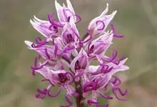 意大利红门兰,也称裸男兰、意大利男人兰,为兰科红门兰属的一种,植株高20-50厘米,花顶生,为发白的粉红色或紫色,花被片为头盔状,有暗色条纹,整朵花的造型就像一个戴着草帽的裸体男人。蒴果直立,…全部>>