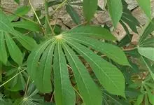木薯,为大戟科木薯属的一种直立灌木,又名木番薯、树薯。木薯高1.5-3米;块根圆柱状。叶纸质,轮廓近圆形;裂片倒披针形至狭椭圆形;托叶三角状披针形。圆锥花序顶生或腋生,花萼带紫红色且有白粉霜。…全部>>