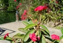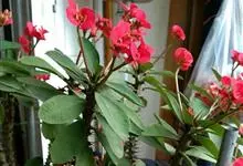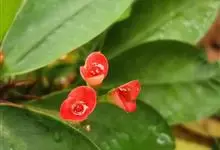铁海棠为大戟科大戟属蔓生灌木植物;茎多分枝,具纵棱,呈旋转状;叶互生,通常集中于嫩枝上;每个花序基部边缘具微小的红色尖头;苞叶先端圆且具小尖头,无柄,上面鲜红色,下面淡红色;苞片丝状;子房光滑无毛,…全部>>
