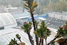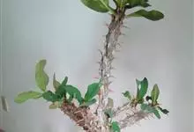 虎刺梅:别称铁海棠,是蔓生灌木植物。茎多分枝,长60-100厘米,直径5-10毫米,具纵棱,密生硬而尖的锥状刺,刺长1-1.5厘米,直径0.5-1.0 毫米,常呈3-5列排列于棱脊上,呈旋转。叶互生…全部>>
