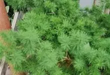 蓬莱松是天门冬科、天门冬属多年生丛生草本植物。宿存,圆柱形肉质根,纵截面为绿色和表面灰色。植株高可达3米。茎呈圆柱形或近四边形,底部木质化,具有灰色或灰褐色。幼嫩的茎在每个节上都被紫绿色鳞片包,…全部>>