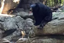 马来熊,是食肉目熊科马来熊属哺乳动物。体胖颈短,眼睛和耳朵小;头部短圆;全身乌黑光滑;鼻唇周为棕黄色,裸露无毛;眼圈为灰褐色,趾基部连有短蹼;胸斑中央有一个毛旋,颈部周围的一圈皮肤极松弛,…全部>>