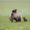 棕熊是熊科熊属哺乳动物。体形健硕,肩背隆起,身后长有一条短尾。毛色多为棕褐色或棕黄色;老年呈银灰色;幼年为棕黑色。野生条件下寿命为20—30年。棕熊分布广泛,主要分布在欧亚大陆和北美,…全部>>
