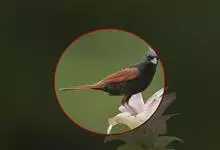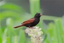 凤头鹀:属小型鸣禽,体重21-31克,体长134-175毫米。以头顶的细长羽冠为特征,雄鸟全身几乎均为黑色具蓝色光泽,两翅和尾以及尾上覆羽栗红色。雌鸟具短的褐色羽冠,上体暗橄榄褐色,…全部>>