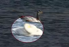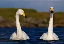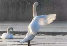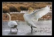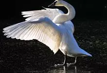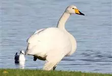 小天鹅为大型水禽,体长110~130厘米,体重4~7千克,雌鸟略小。它与大天鹅在体形上非常相似,同样是长长的脖颈,纯白的羽毛,黑色的脚和蹼,身体也只是稍稍小一些,颈部和嘴比大天鹅略短,但很难分辩。最…全部>>