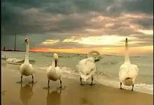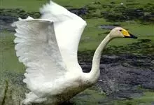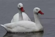 扁嘴天鹅:体长90-115厘米,体羽白色,羽端黑色,在飞行时则很明显。雁喙和脚红色。栖息于茂密的沼泽及湖泊,主要吃草及水生植物,也会吃蚌类及鱼类。分布于南美洲,…全部>>