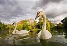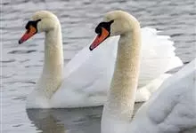 疣鼻天鹅:是鸟纲、鸭科、天鹅属的一种大型的游禽,体长1.2-1.5米,体重6.75-10千克。脖颈细长,前额有一块瘤疣的突起,因此得名。全身羽毛洁白。在水中游泳时,颈部弯曲而略似“S“形。…全部>>