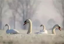 疣鼻天鹅:是鸟纲、鸭科、天鹅属的一种大型的游禽,体长1.2-1.5米,体重6.75-10千克。脖颈细长,前额有一块瘤疣的突起,因此得名。全身羽毛洁白。在水中游泳时,颈部弯曲而略似“S“形。…全部>>
