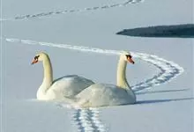 小天鹅为大型水禽,体长110~130厘米,体重4~7千克,雌鸟略小。它与大天鹅在体形上非常相似,同样是长长的脖颈,纯白的羽毛,黑色的脚和蹼,身体也只是稍稍小一些,颈部和嘴比大天鹅略短,但很难分辩。最…全部>>