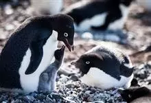阿德利企鹅在企鹅家族中属中、小型种类,体长72-76厘米,和许多种类企鹅一样,雌鸟和雄鸟同形同色,从外形难以辨认。眼圈为白色,头部呈蓝绿色,嘴为黑色,嘴角有细长羽毛。羽毛由黑、白两色组成,…全部>>