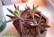 棒叶落地生根是景天科、落地生根属植物。茎直立、粉褐色。叶圆棒形,上表面有沟、粉色,有红褐斑。叶片交互对生,交叉排列成十字形。叶端锯齿上长有很小的幼株、落地后即可生根成活。原产非洲马达加斯加。…全部>>