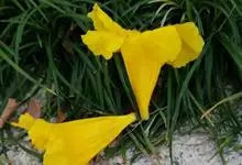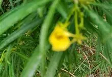 黄花夹竹桃K. Schum.),又名“酒杯花”“柳木子”“黄花状元竹”,是夹竹桃科,黄花夹竹桃属下的常绿乔木植物。高达5m,全株无毛,树皮棕褐色;叶互生,近革质,线形或线状披针形;花大,黄色,具香味,…全部>>