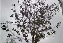 洋紫荆:落叶乔木;树皮暗褐色,近光滑;幼嫩部分常被灰色短柔毛;枝广展,硬而稍呈之字曲折,无毛。叶近革质,广卵形至近圆形,宽度常超过于长度,先端2裂达叶长的1/3,裂片阔,钝头或圆,两面无毛或下面略被…全部>>