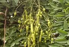 槐 Schott),豆科槐属的落叶乔木。树皮暗灰色,树冠球形,老时则呈扁球形或倒卵形。枝叶密生,羽状复叶。圆锥花序顶生,花蝶形,夏季开黄白色花,略具芳香。荚果肉质,念珠状不开裂,黄绿色,常悬垂树梢,…全部>>