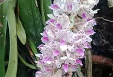 多花指甲兰是兰科、指甲兰属植物。茎粗壮,叶肉质。花序叶腋生,柄粗壮,轴较长,密生许多花;花苞片绿色,质地厚,卵状披针形;花梗和子房白色带淡紫色晕;子房棒状,…全部>>