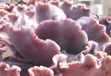 女王花笠,又名扇贝石莲花、女王花舞笠,是景天科拟石莲花属的多肉植物。由美国加利福尼亚州的育种师Dick Wright于1964年培育。特征是呈大波浪状褶皱的红色叶缘和气质高贵的粉紫色调。…全部>>