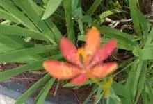 雄黄兰是鸢尾科雄黄兰属多年生草本植物。雄黄兰具扁球径,叶多基生,剑形;花茎由多花给成疏散的穗状花序,花冠漏斗状,深橙红色;蒴果。 花期7-8月,果期8-10月 。雄黄兰因橘红色的花与雄黄颜色相似而得名。…全部>>