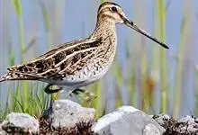 扇尾沙锥是鹬科、沙锥属鸟类,又称普通沙锥、扇尾鹬、小沙锥。体型小;喙粗长而直;上体黑褐色,具栗色和黄白色斑纹;头顶具黄白色中央冠纹,背具4条白纵带;下体白色,颈、胸淡褐色,带褐色纵纹;翼后缘白色,…全部>>