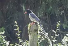 红嘴蓝鹊(赤尾山鸦、长尾山鹊)鸣禽亚目 > 鸦科 > 蓝鹊属 > 红嘴蓝鹊