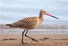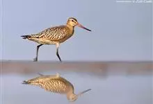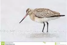 斑尾塍鹬,是鸻形目鹬科塍鹬属鸟类。其体形较大,体长约40厘米;喙较长,基部肉红色、尖端黑色而略向上翘;贯眼纹细而深,眉纹白色明显;雌鸟体型比雄鸟大,喙部也明显更长。非繁殖期雌雄鸟羽色相似,…全部>>