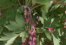 荷包牡丹 Fukuhara),是罂粟科荷包牡丹属的多年生草本植物,株高30-60厘米,具肉质根状茎;茎直立呈圆柱形;叶二回三出全裂,状似牡丹叶;总状花序顶生,基部为心形,花瓣紫红色至粉红色,稀白色,…全部>>