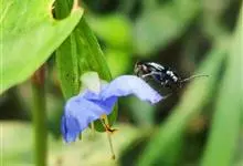 鸭跖草,是鸭跖草科鸭跖草属的—年生披散草本植物。鸭跖草的茎匍匐生根,多分枝;叶披针形或卵状披针形;萼片膜质,花瓣深蓝色;蒴果椭圆形;种子棕黄色,一端平截,腹面平,有不规则窝孔;花期7-9月,…全部>>