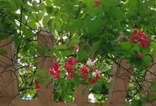 使君子 Jongkind)是使君子科、使君子属攀援灌木,叶对生,椭圆形,两面均被灰白色柔毛。穗状花序,倒挂下垂。花期夏秋。果有五棱,熟时黑色,种子白色。分布于印度、缅甸、菲律宾和中国。喜温润,深根性,…全部>>