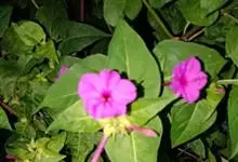 即紫茉莉,英文名:Four-o'clock,Marvel of Peru,为紫茉莉科、紫茉莉属多年生草本植物,一年生栽培。株高50~80cm。根粗壮,茎多分枝而散生。叶对生,卵形或心脏形。花数朵簇生…全部>>