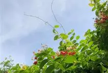 使君子 Jongkind)是使君子科、使君子属攀援灌木,叶对生,椭圆形,两面均被灰白色柔毛。穗状花序,倒挂下垂。花期夏秋。果有五棱,熟时黑色,种子白色。分布于印度、缅甸、菲律宾和中国。喜温润,深根性,…全部>>