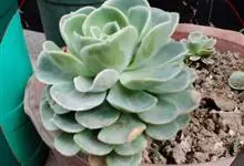 蓝石莲是景天科、拟石莲花属的多肉植物。茎部粗壮,成熟植株茎部木质化。叶片莲座型密集排列,株径不会很大,叶片相对较薄,常年绿色,表面布有白色粉末,中部凹陷,呈倒水滴状。叶尖较尖,叶缘光滑无褶皱,…全部>>