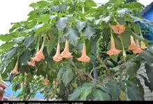 洋金花是茄科曼陀罗属植物,一年生草本植物,全株近于无毛。茎直立,圆柱形,高30~100cm,基部木质化,上部呈义状分枝。叶互生,上部的叶近于对生;叶柄长2~6cm,表面被疏短毛;叶片卵形、长卵形或心形,…全部>>