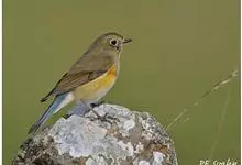 红胁蓝尾鸲俗名:蓝点冈子、蓝尾巴根子、蓝尾杰、蓝尾欧鸲。体型略小而喉白的鸲。特征为橘黄色两胁与白色腹部及臀成对比。雄鸟上体蓝色,眉纹白;亚成鸟及雌鸟褐色,尾蓝。…全部>>