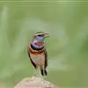 蓝点颏亦称“蓝喉歌鸲”,通称蓝靛颏儿。身体大小和麻雀相似,体长12-13厘米,体重17-18克。头部、上体主要为土褐色。眉纹白色。尾羽黑褐色,基部栗红色。颏部、喉部辉蓝色,下面有黑色横纹。下体白色。…全部>>