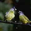 凤头雀嘴鹎:属小型鸟类,体长18-22厘米。嘴粗短、呈象牙色或乳黄色,前额和脸灰色,头顶黑色,有一朝前竖立的黑色羽冠。上体橄榄绿色,下体黄绿色,尾羽黄绿色具宽阔的黑褐色端斑。…全部>>