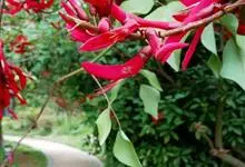 鸡冠刺桐是豆科、刺桐属落叶灌木或小乔木,茎和叶柄稍具皮刺。羽状复叶具3小叶;小叶长卵形或披针状长椭圆形,花与叶同出,总状花序顶生,每节有花1-3朵;花深红色,荚果长约15厘米,褐色,种子间缢缩;种子大,…全部>>