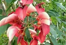 鸡冠刺桐是豆科、刺桐属落叶灌木或小乔木,茎和叶柄稍具皮刺。羽状复叶具3小叶;小叶长卵形或披针状长椭圆形,花与叶同出,总状花序顶生,每节有花1-3朵;花深红色,荚果长约15厘米,褐色,种子间缢缩;种子大,…全部>>