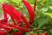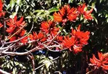 鹦哥花是豆科刺桐属植物,小乔木或乔木。树干和枝条具皮刺。羽状复叶,叶柄平滑,顶生小叶近肾形,侧生小叶斜宽心形,两面无毛。总状花序生于先端叶腋,花鲜红色,大,具花梗,苞片单生,卵形,花萼陀螺形,花冠红…全部>>