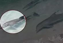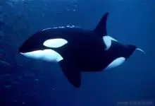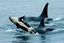 虎鲸,是鲸偶蹄目海豚科虎鲸属哺乳动物。成体体重6600千克,平均体长6-9米;头部略圆,…全部>>