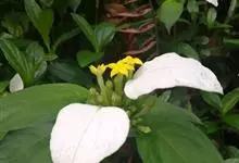 玉叶金花,为茜草科玉叶金花属攀援灌木;叶对生或轮生,卵状;萼片叶状雪白色,聚伞花序顶生,花冠黄色,花柱短而内藏。玉叶金花常野生于丘陵山坡、灌丛、林缘、沟谷、山野、路旁等地,其茎叶味甘、性凉,…全部>>