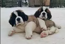 圣伯纳犬,别名巴里汉德,属于大型工作犬,肩高约65~90厘米,体重约50~90千克。圣伯纳犬身体强壮,被毛红褐色和白色相间,头圆而宽大。颈部强壮,胸宽深,背直。前肢长直,腕关节略前倾,后肢腿骨粗壮,…全部>>