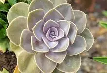 紫珍珠是景天科石莲花属的多年生肉质草本植物。植株中小型;叶片肉质,匙形,呈莲座状紧密排列;叶片粉紫色,叶缘呈粉白色,光照充足时颜色亮丽,不足时叶色会呈现深绿色或灰绿色,叶面光滑,被轻微白粉,…全部>>