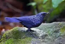 紫啸鸫是雀形目鹟科啸鸫属鸟类,又称黑雀儿,山鸣鸡、乌精。成鸟眼先及颏绒黑色;前额、头顶至背及肩羽和颈侧呈深紫蓝色,羽端具较密集的亮蓝色点斑;腰至尾上覆羽的深紫蓝色较暗而杂黑褐色,…全部>>