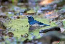 海南蓝仙鹟,Cyornis hainanus ,鹟科蓝仙鹟属的一种小型鸟类,体长13~15厘米。上体包括两翅和尾表面暗蓝色,前额和眼上眉斑较鲜亮。喉、胸暗蓝色,下胸和两胁蓝灰色,其余下体白色。…全部>>