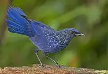 紫啸鸫是雀形目鹟科啸鸫属鸟类,又称黑雀儿,山鸣鸡、乌精。成鸟眼先及颏绒黑色;前额、头顶至背及肩羽和颈侧呈深紫蓝色,羽端具较密集的亮蓝色点斑;腰至尾上覆羽的深紫蓝色较暗而杂黑褐色,…全部>>