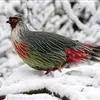 血雉雉科血雉属鸟类,别名血鸡、松花鸡,血雉的雄鸟大覆羽、尾下覆羽、尾上覆羽、脚、头侧、腊膜为红色,故称血雉。其别名甚多,各地皆异。在甘肃,因其胸侧和翅上覆羽沾绿,被称为“绿鸡”;因其羽毛形似柳叶,…全部>>